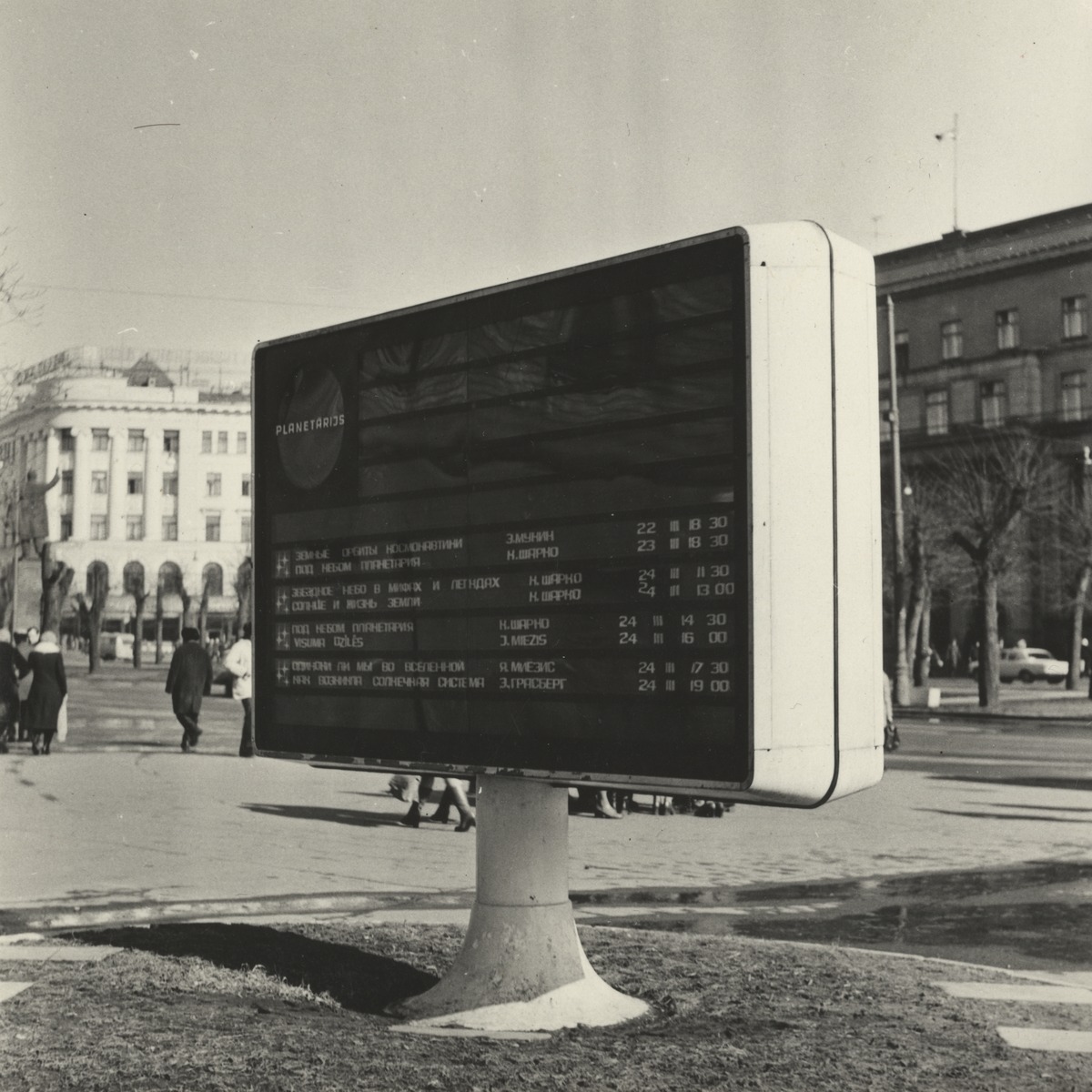 Kinētisks objekts - reklāmas tablo pie Planetārija. Realizācija dabā
