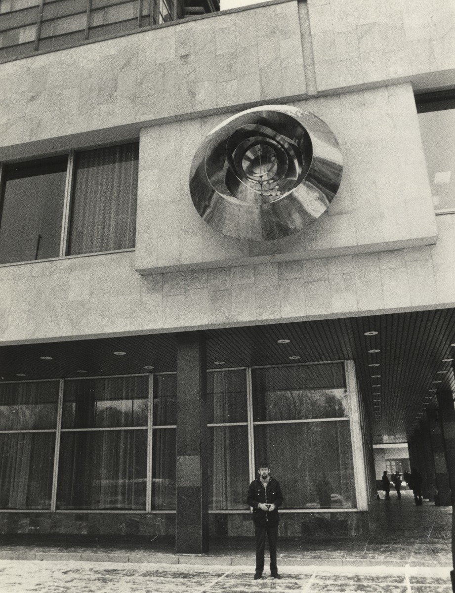 Kinētisks objekts – mobilis “Sakta” uz viesnīcas “Latvija” fasādes. A. Riņķis