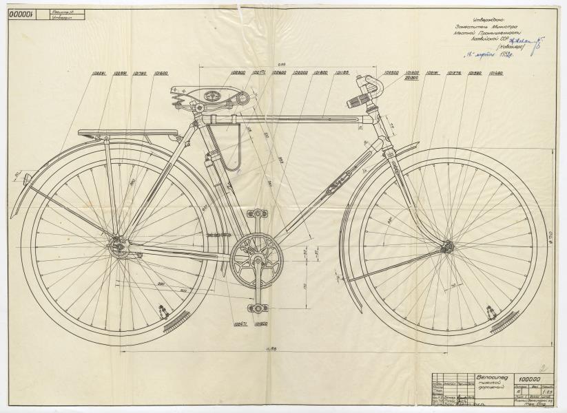 Vīriešu velosipēds “Rīga 10”. Darba rasējumi
