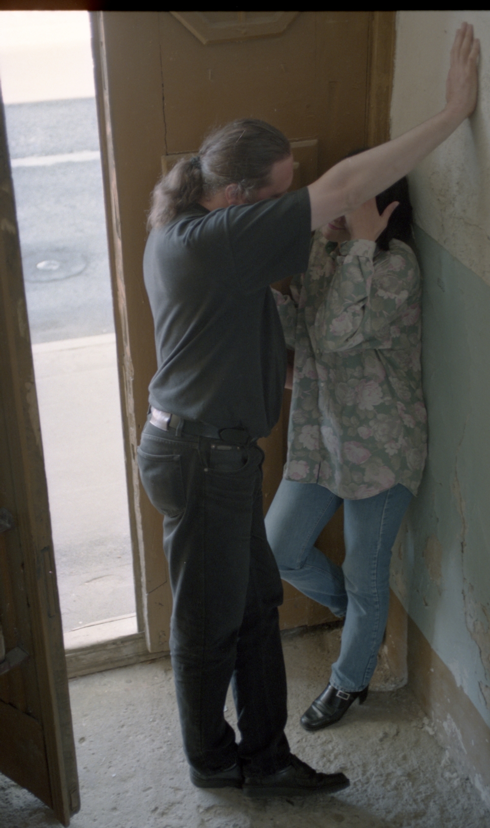 Zeķubikses, kājas zeķubiksēs. «Rīgas dzirnavnieks». Žanra bilde - gadījuma sakari. Jaunieši apkampušies.