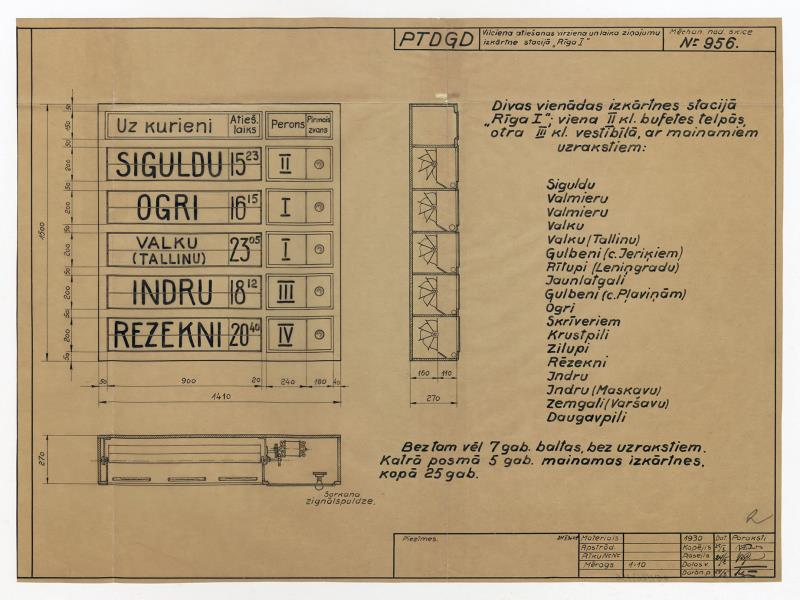 Dzelzceļa stacijas "Rīga I” maināmie pieturvietu uzraksti. Rasējums