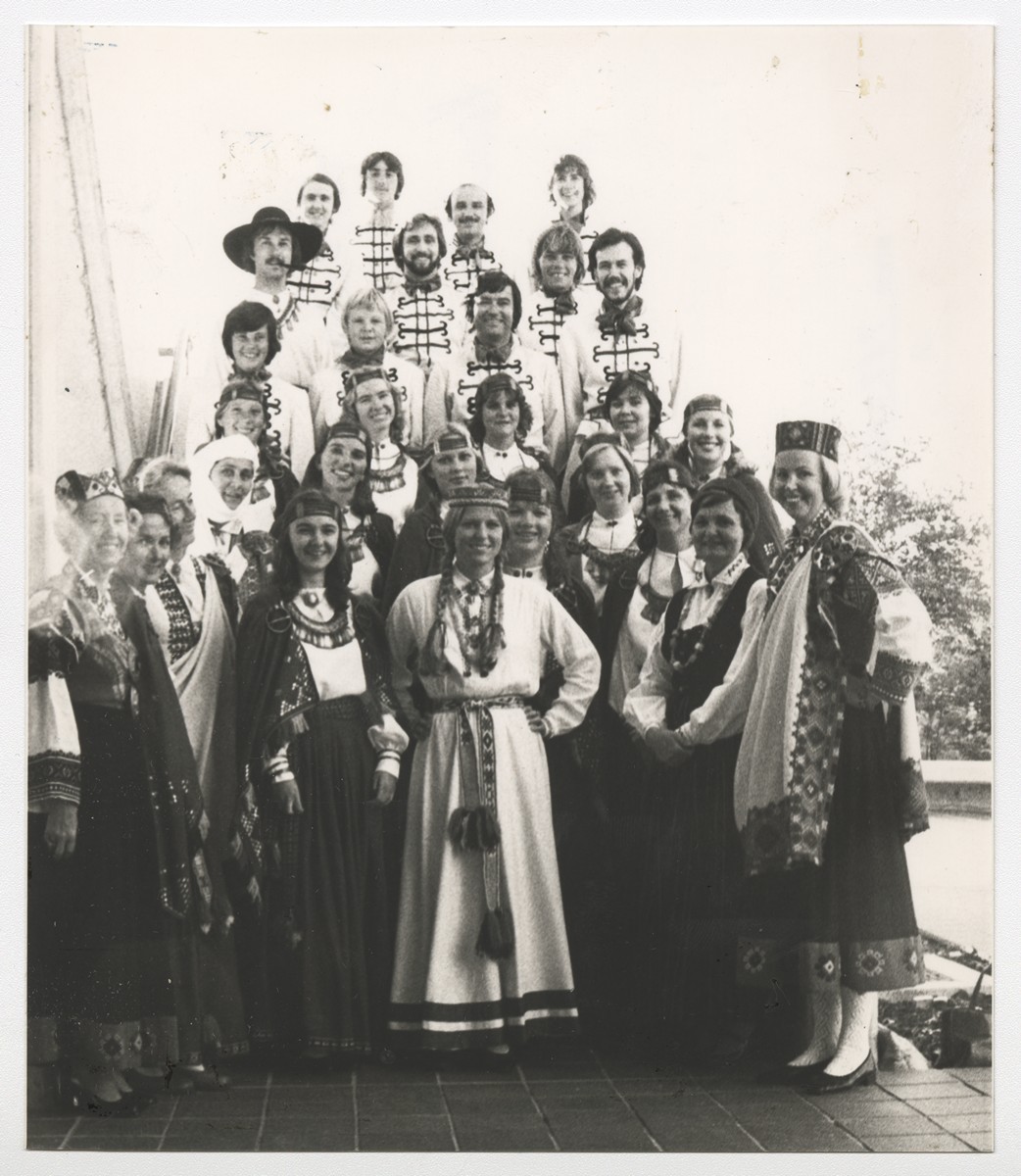[Austrālijas Latviešu 23. Kultūras dienas.] Kanberas Tautas deju ansamblis "Sprigulītis". Dibinātāja un vadītāja Skaidrīte Darius (1.r. 2. no labās). [Sidneja, 1973.g. 25. - 29. decembris]. Foto: nezināms.