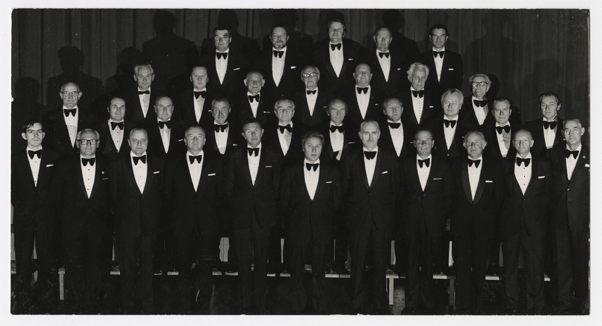 [Austrālijas Latviešu 28. Kultūras dienas.] Adelaidas "Daugavas Vanagu" vīru koris "Daugava". Diriģents Staņislavs Līvmanis. [Adelaida, 1978.g. 25. - 29. decembris]. Foto: nezināms.