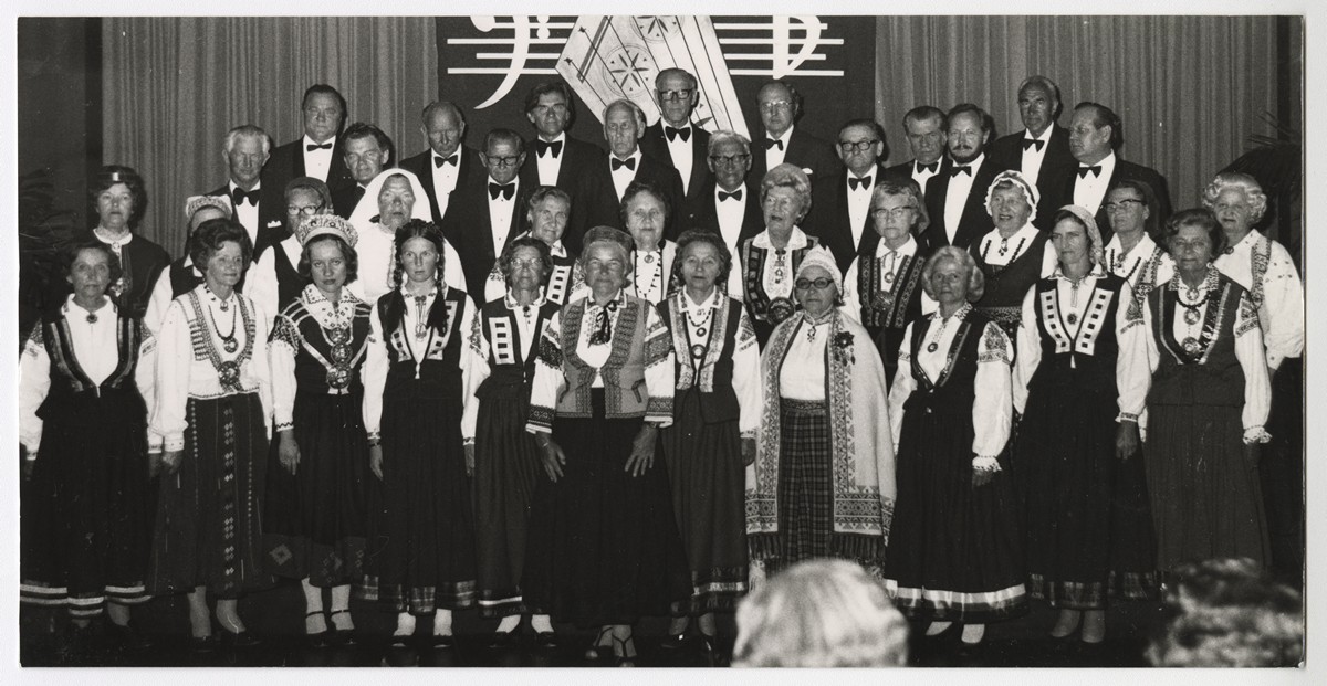 Pērtas Latviešu jauktais koris. 1.r. vidū diriģente Vilma Roga