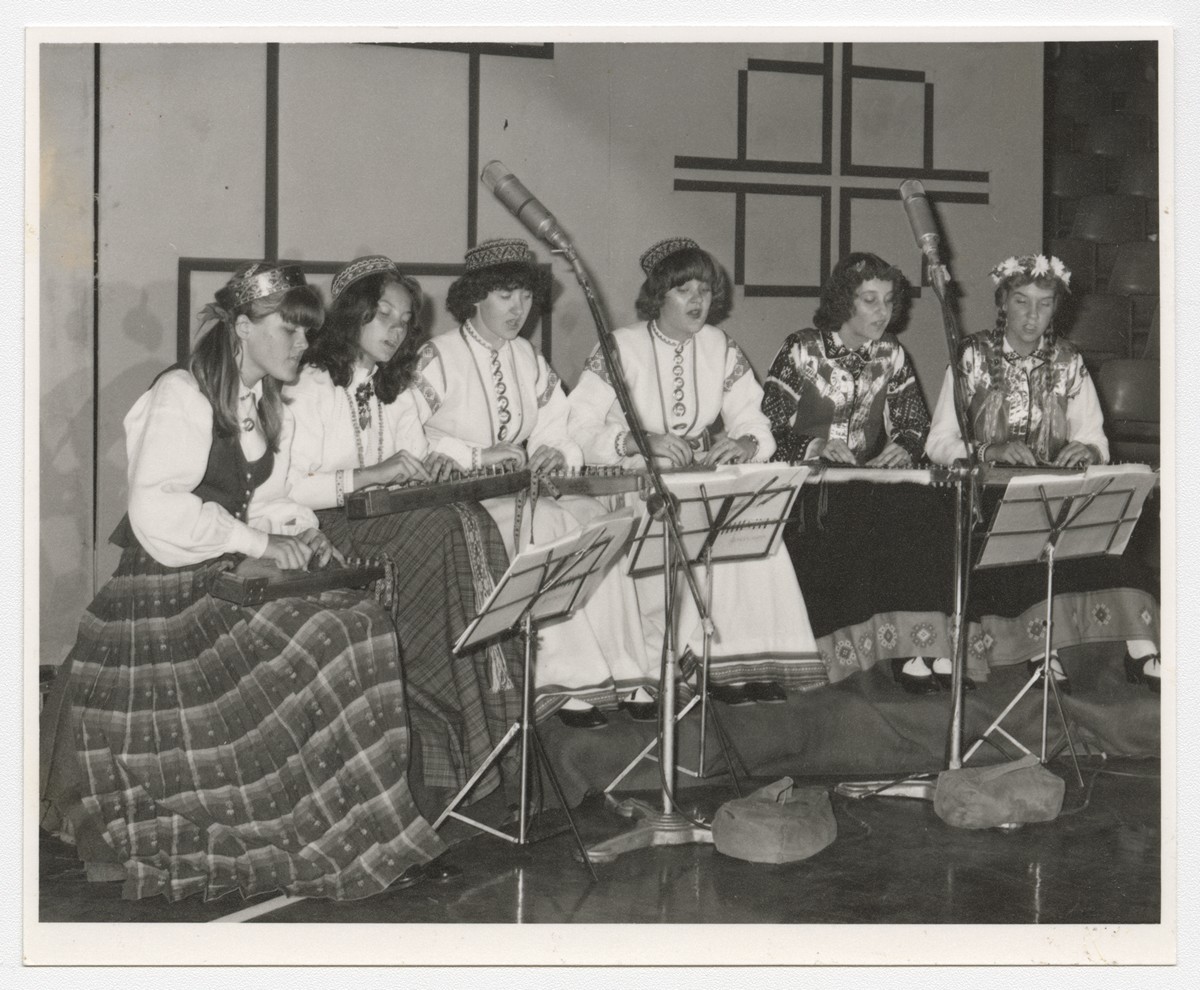 Austrālijas Latviešu 33. Kultūras dienas. Koklētāju ansamblis "Ausma" no Adelaidas. 1. no kr. Andra Dārziņa, no labās vadītāja Lilita Šulca. Melburna, 1983.g. 27. - 31.decembris]. Foto: nezināms.