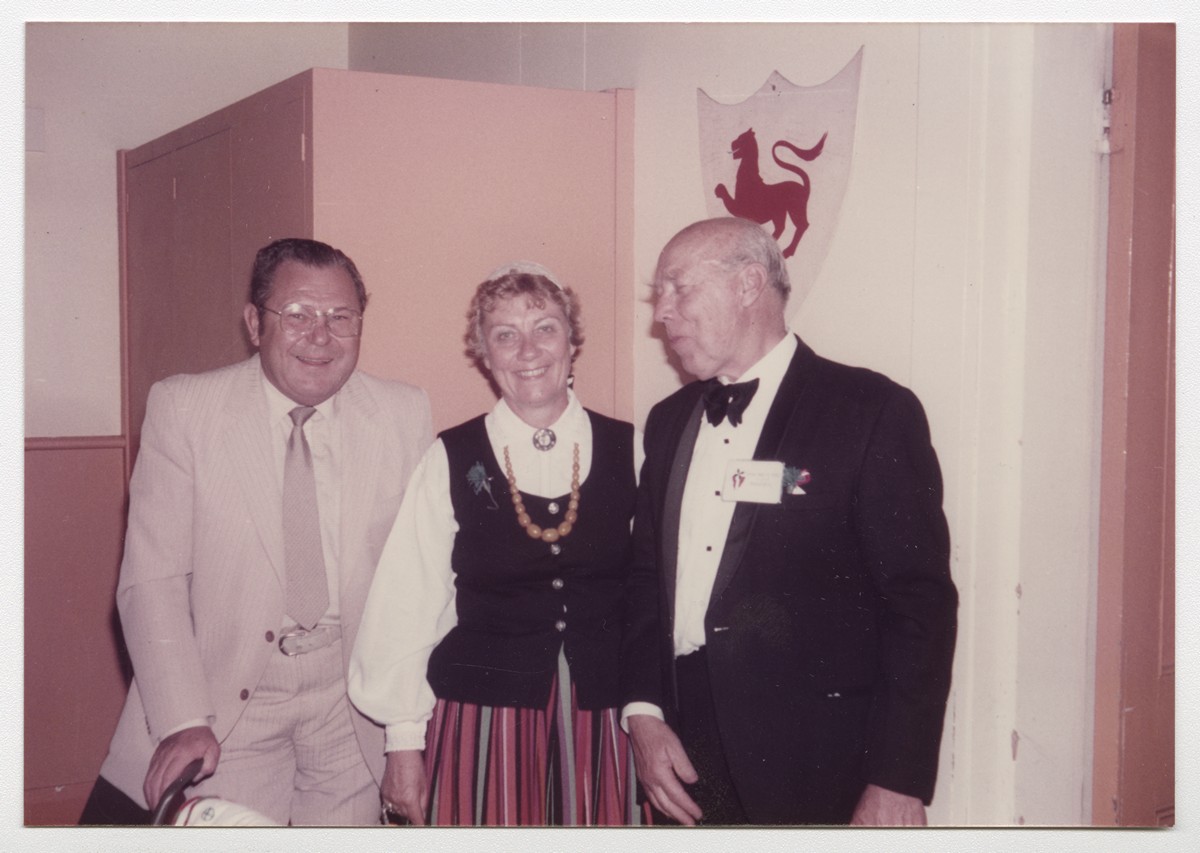 Austrālijas Latviešu 34. Kultūras dienas. KD priekšsēdis Edvīns Baulis (no labās) un divas nenoskaidrotas personas. Lonsestona, Tasmānija, 1984.g. 26. - 31.decembris. Foto: nezināms.