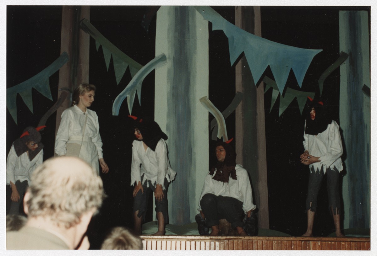 Austrālijas Latviešu 39. Kultūras dienas. Austrālijas Latviešu teātris, rež. Ieva Kaina un Ero Pūpēdis, dekorators Ivars Muzikants. Melburnas Latviešu nama zāle, 1989.g. 27.decembris. Foto: nezināms.