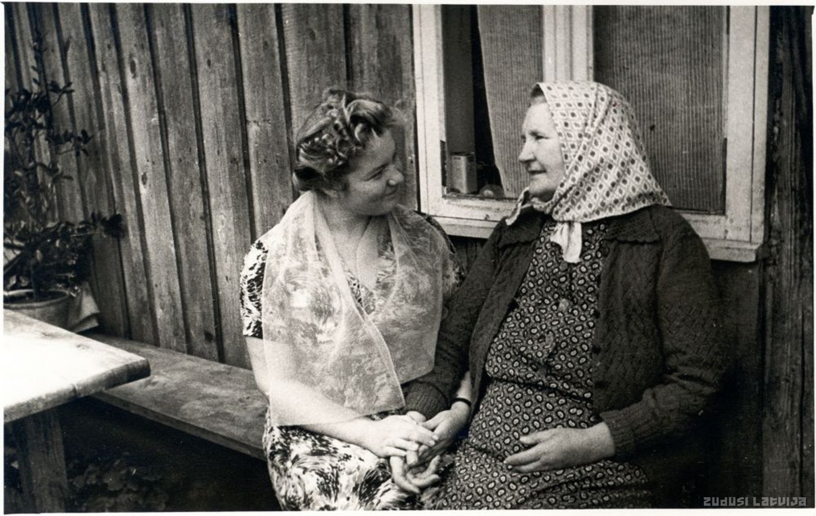 Pētera Stučkas Latvijas Valsts Universitātes studente Renāte Tavare runā ar Teicēju Katrīnu Kurzemi 20. gadsimta 60. gados