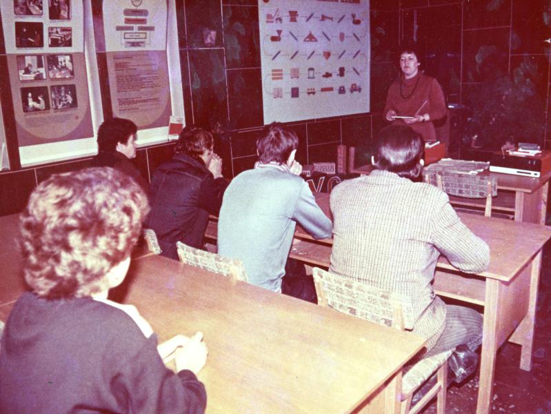 Klases priekšā rūpnīcas “Usma” kadru sagatavošanas inženiere Ļubova Čerenkova.