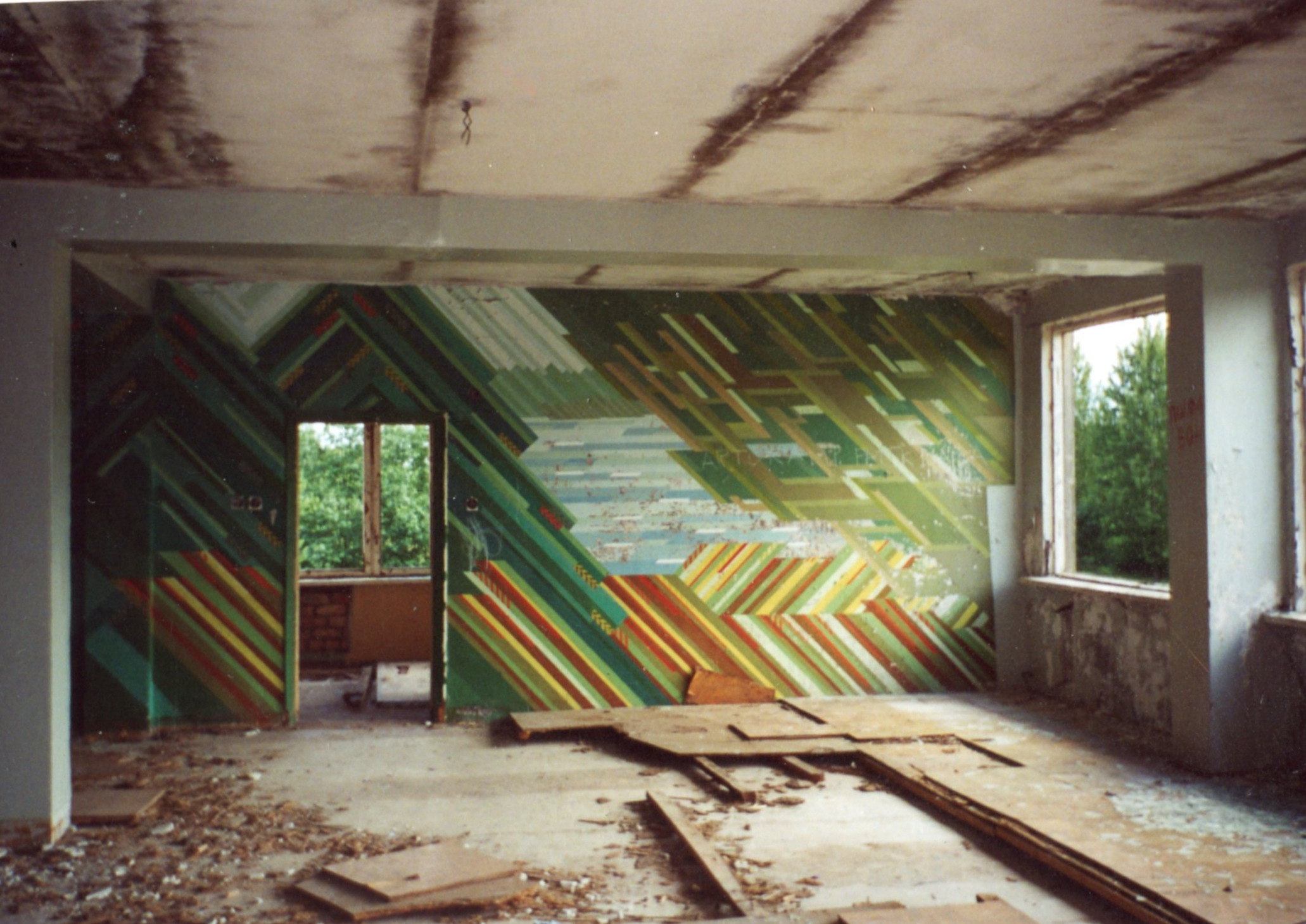 Pasākumu zāle. Vēl redzami mākslinieces Laimdotas Junkaras sienu zīmējumi.