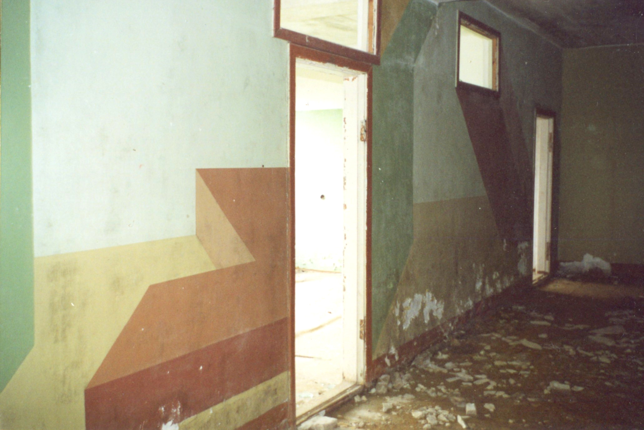Pasākumu zāle. Vēl redzami mākslinieces Laimdotas Junkaras sienu zīmējumi.