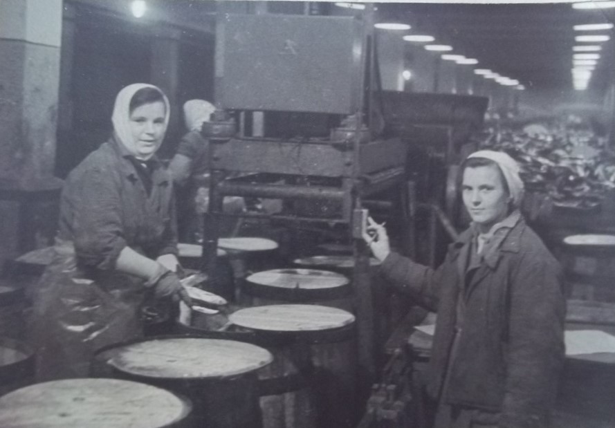 Zivju sālīšanas ceha darbinieces.