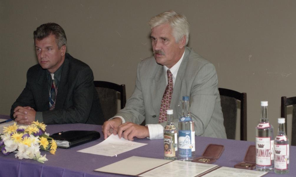 SIA «Internacionālie Vīni» preses konference. Imants Selans. - Puriņš, Raitis, 1958- - 1997-09-10 (Fotogrāfija)