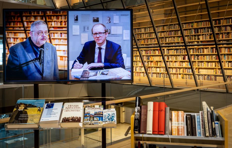 No kreisās: LNB direktors Andris Vilks, Ārlietu ministrijas valsts sekretārs Andris Pelšs