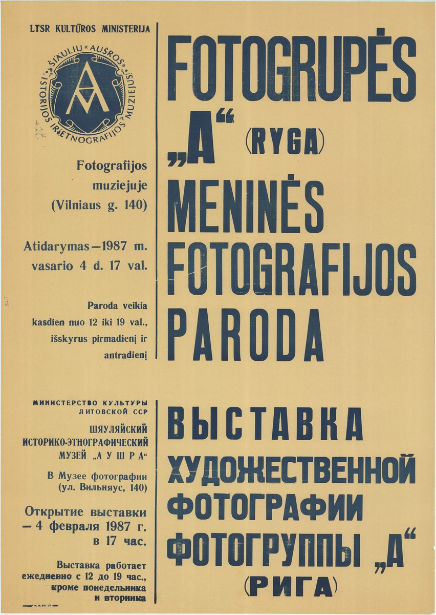 Fotogrāfu grupas “A” izstādes plakāts. Viļņa