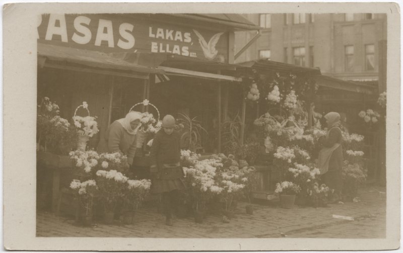 [Ziedu tirgotājas] [attēls] / fotogrāfs nezināms