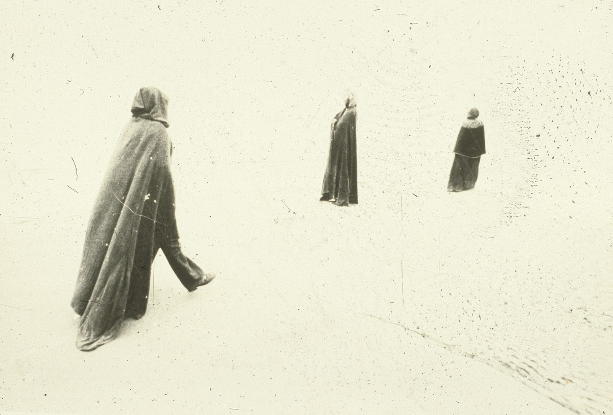 Akcija “Sarkanais Tuksnesis – Veltījums Antonioni”. Vecdaugava. Dalībnieki: Ināra Eglīte, Andris Grīnbergs, Inta Grīnberga, Anita Kreituse, Agris Pilsums (Foto: Jānis Kreicbergs)