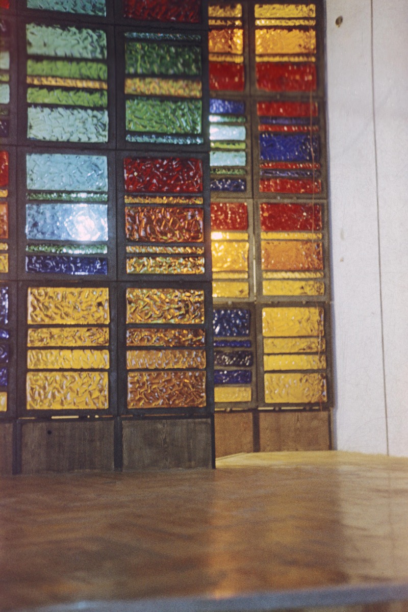 Audiokinētiska gaismas skatuve Daugavpils Celtnieku kultūras namā (Stikla vitrāža, elektroniska vadības iekārta ar skaņas frekvenču un intensitātes analizatoru) Daugavpilī, Latvijā