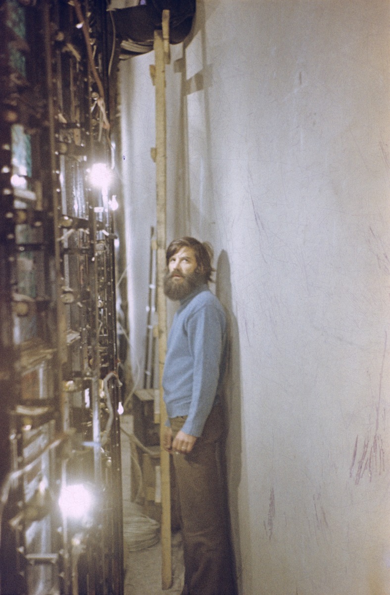 Audiokinētiska gaismas skatuve Daugavpils Celtnieku kultūras namā (Stikla vitrāža, elektroniska vadības iekārta ar skaņas frekvenču un intensitātes analizatoru) Daugavpilī, Latvijā