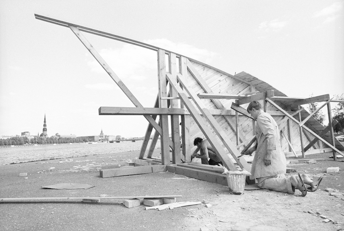 Ojārs Pētersons veido "Tiltu" Ābeļdambī. 1990.gada 10. jūnijs