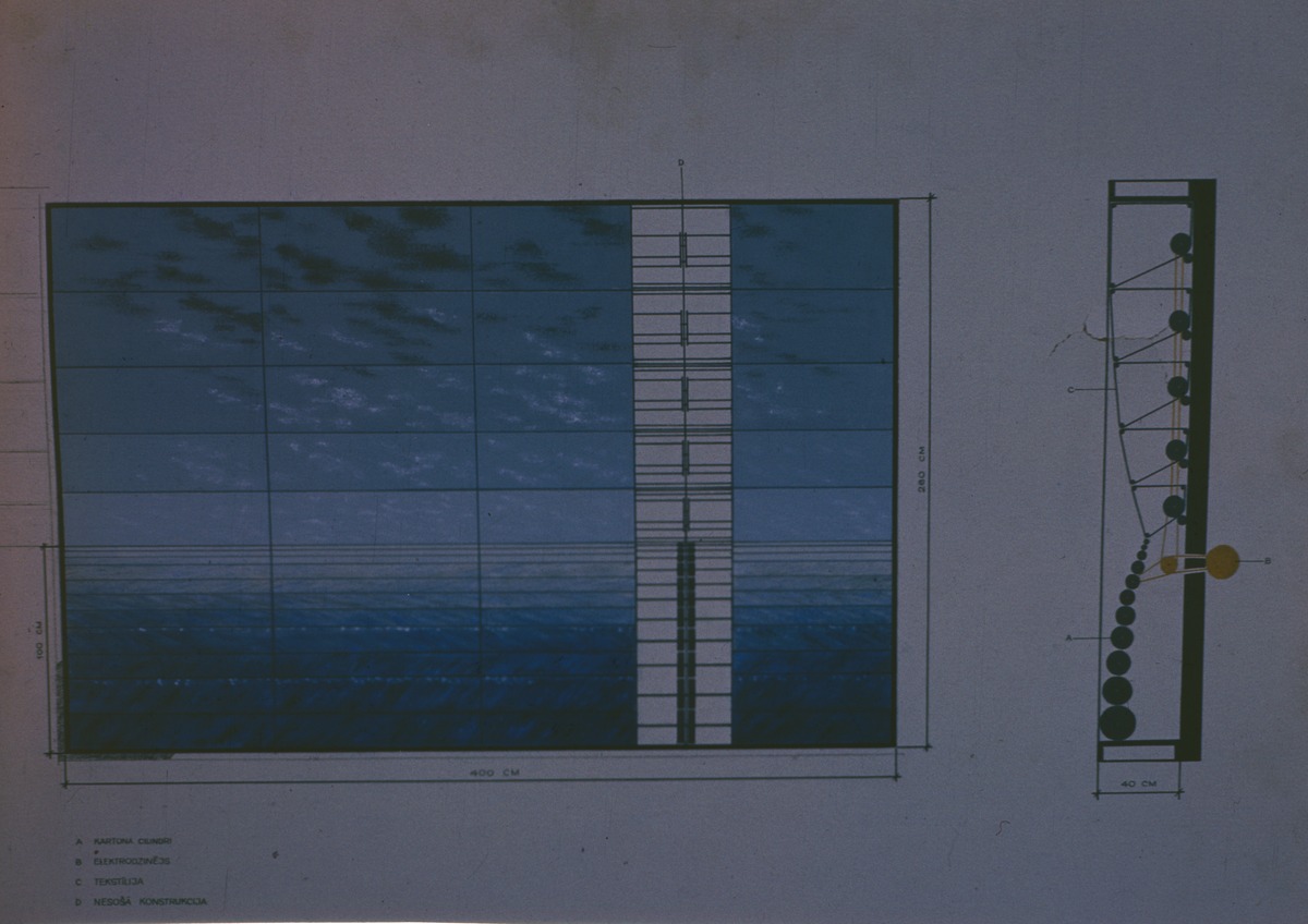 Kinētiska siena “Jūra”. Planšete, pretskats un sānskats