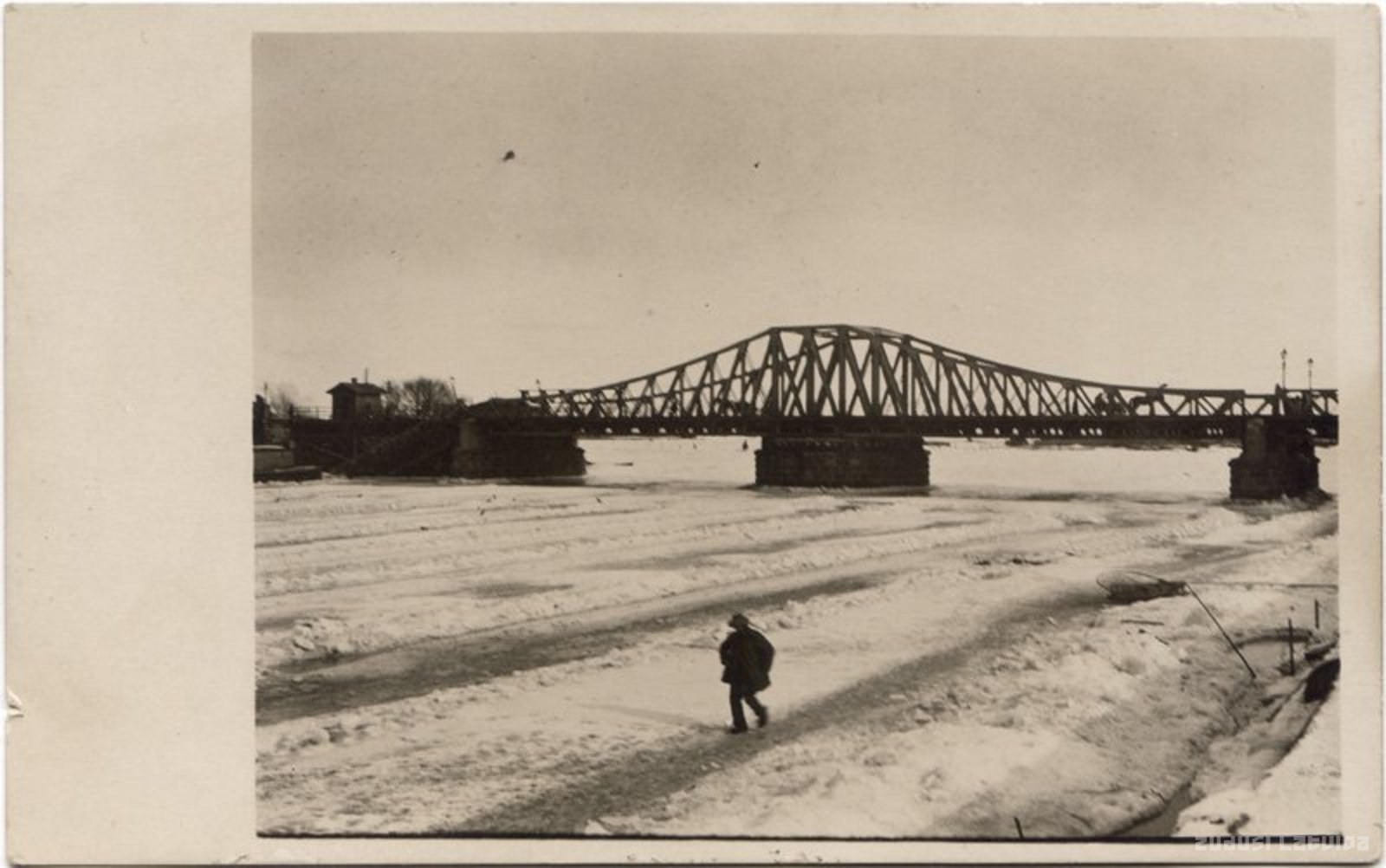 Liepājas dzelzceļa tilts pār Liepājas ezera kanālu, kas savieno ezeru ar jūru, ziemā. Tilts uzcelts 1879. gadā, lai nodrošinātu kravu plūsmu pa Liepājas - Romnas dzelzceļa līniju. Tilts kā pilsētas saimnieciskā uzplaukuma apliecinātājs kalpoja līdz 20. gadsimta 80. gadu beigām, kad to demontēja, ignorējot tā vēsturisko vērtību.