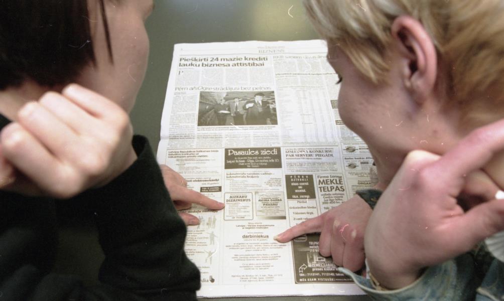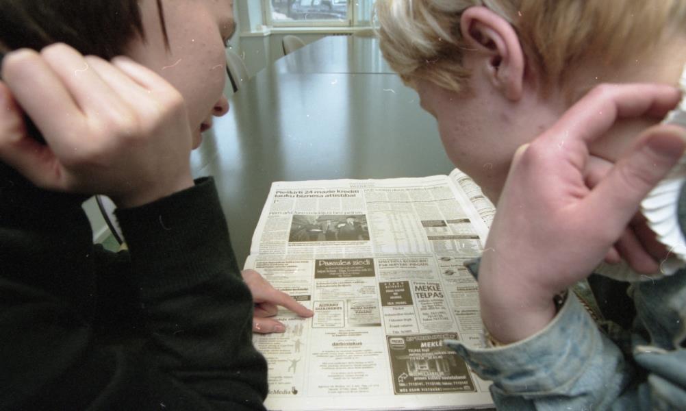 Jaunieši meklē darbu. Meitenes skatās darba sludinājumus. Rīgas zoodārzs - pitons. Zoodārza informācijas daļas vadītājs Ingmārs Līdaka ar sievu