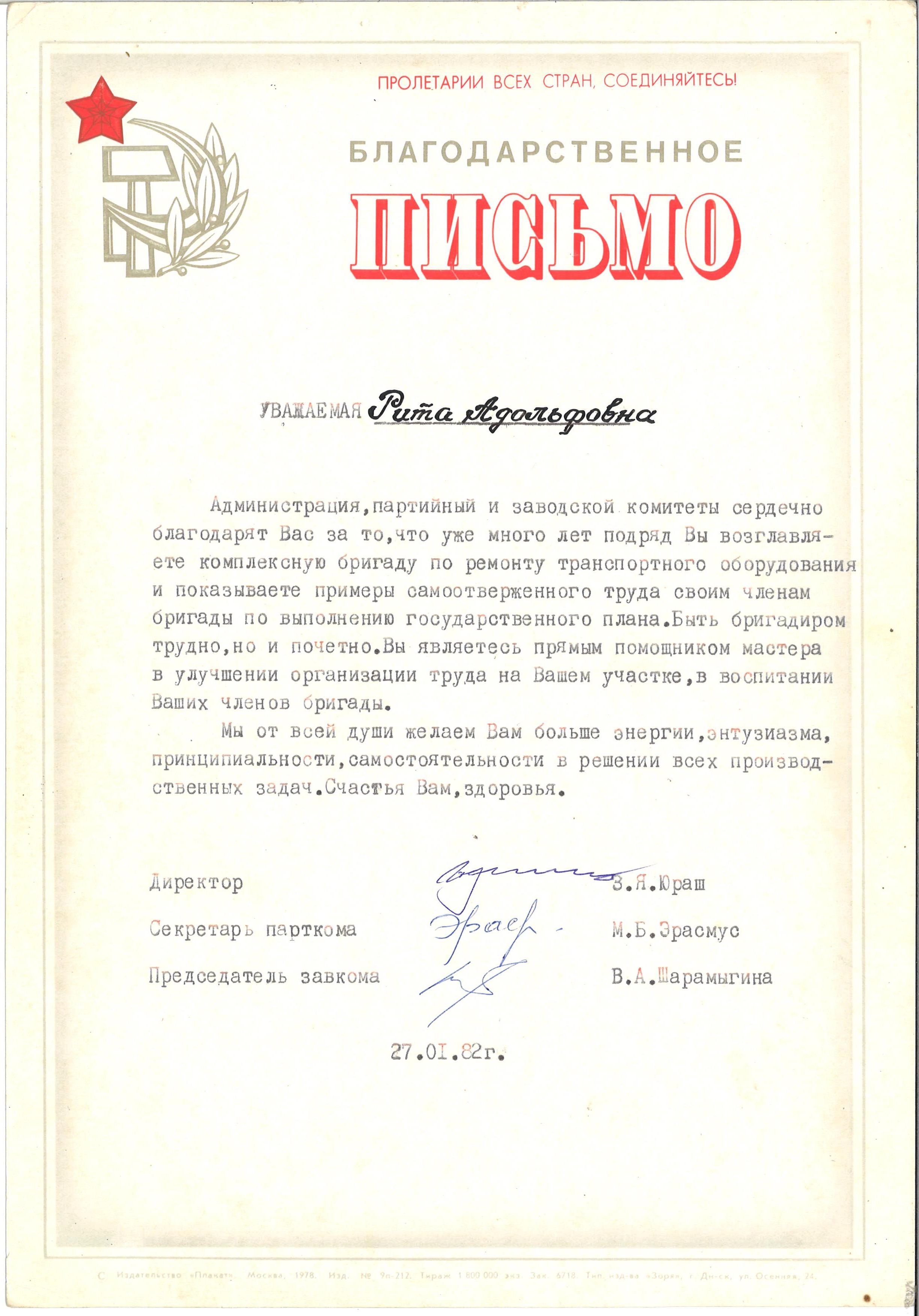 Kūdras fabrika ''Seda'' administrācija reizi gadā apsveica labākos darbiniekus ar goda rakstu