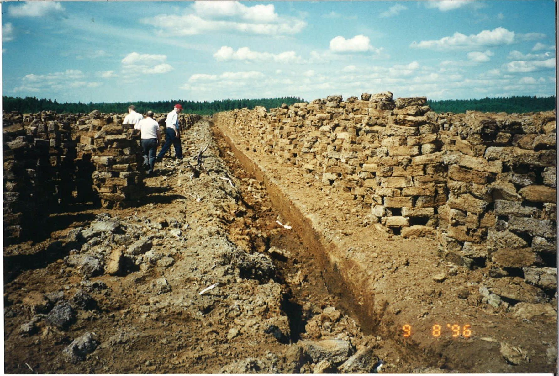 Grieztā kūdra sakrauta žāvēšanai figūrās