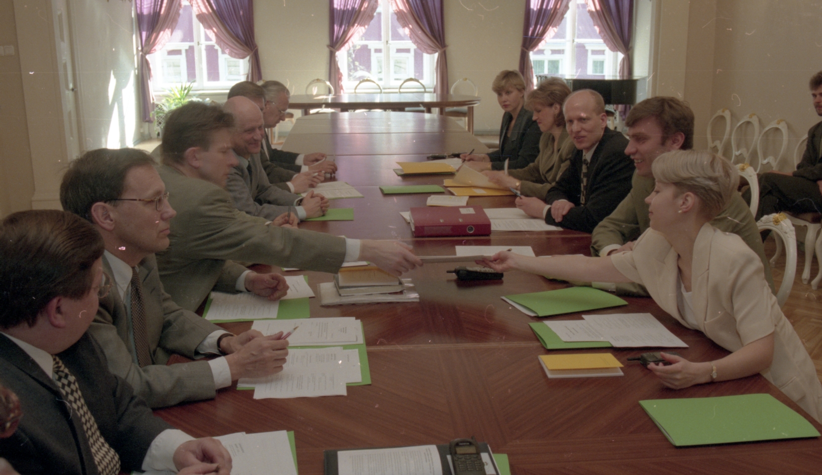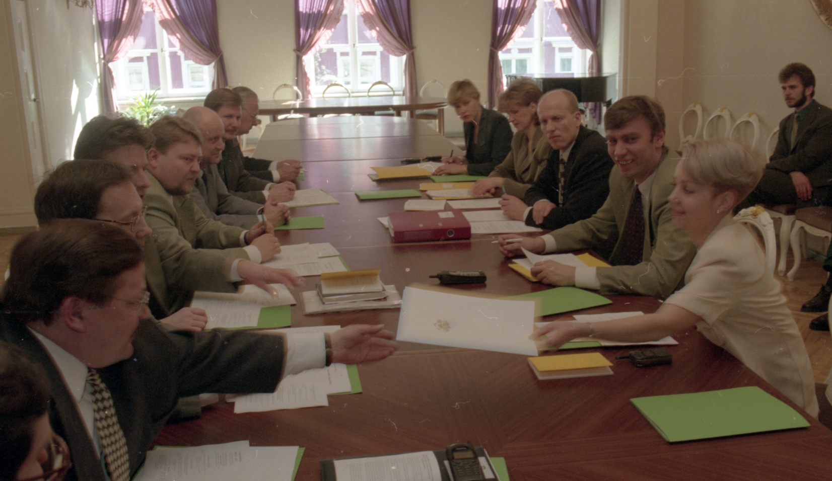 Guntars Krasts ar frakcijām saeimā paraksta līgumu. Jānis Straume, Andrejs Panteļējevs, Guntars Krasts, Indulis Emsis, Andrejs Krastiņš, Roberts Dilba, Māris Grīnblats, Aleksandrs Kiršteins, Juris Dobelis