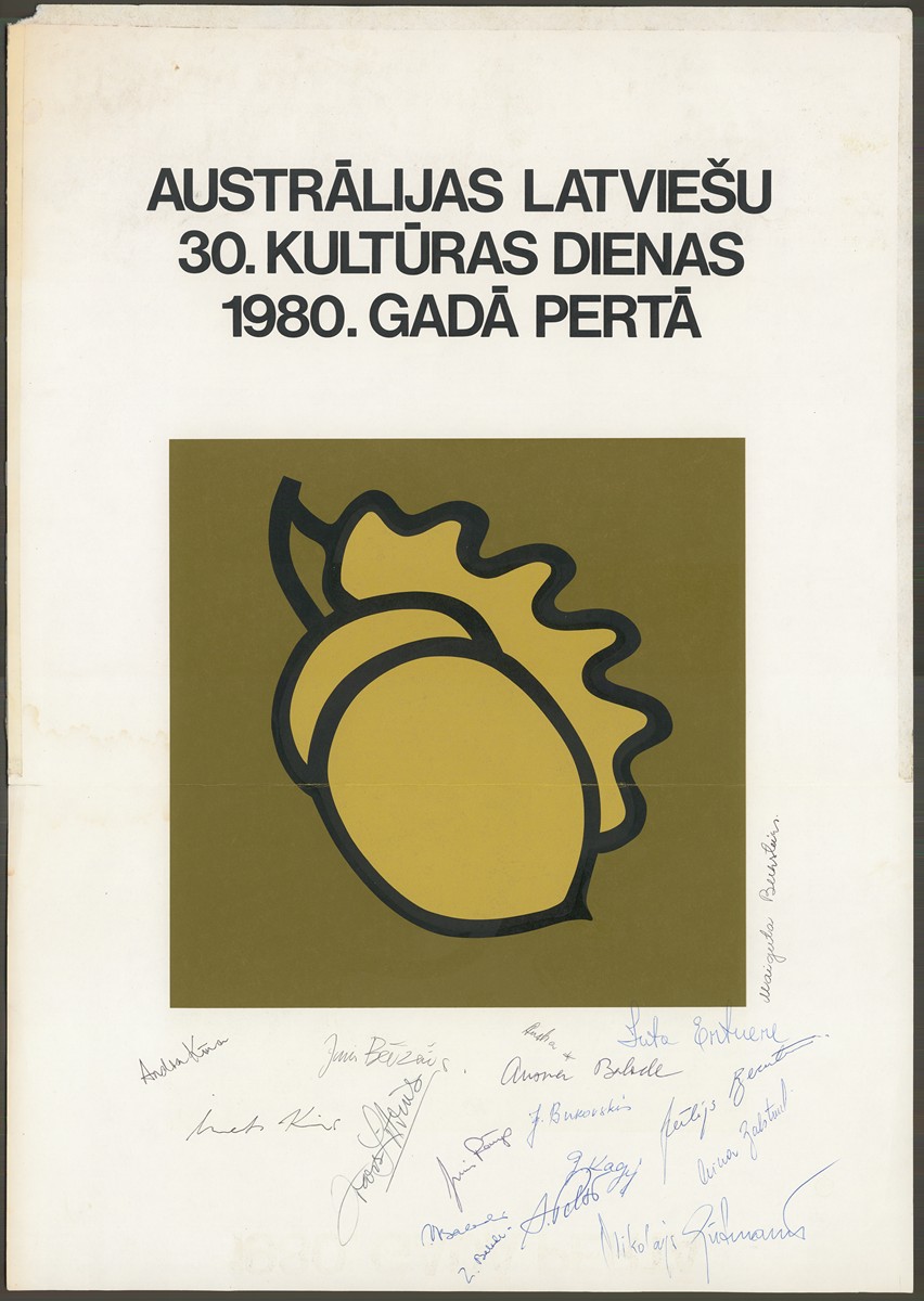 Plakāts. [Egils Pārups]. Austrālijas Latviešu 30. Kultūras dienas Pertā, 1980. gadā