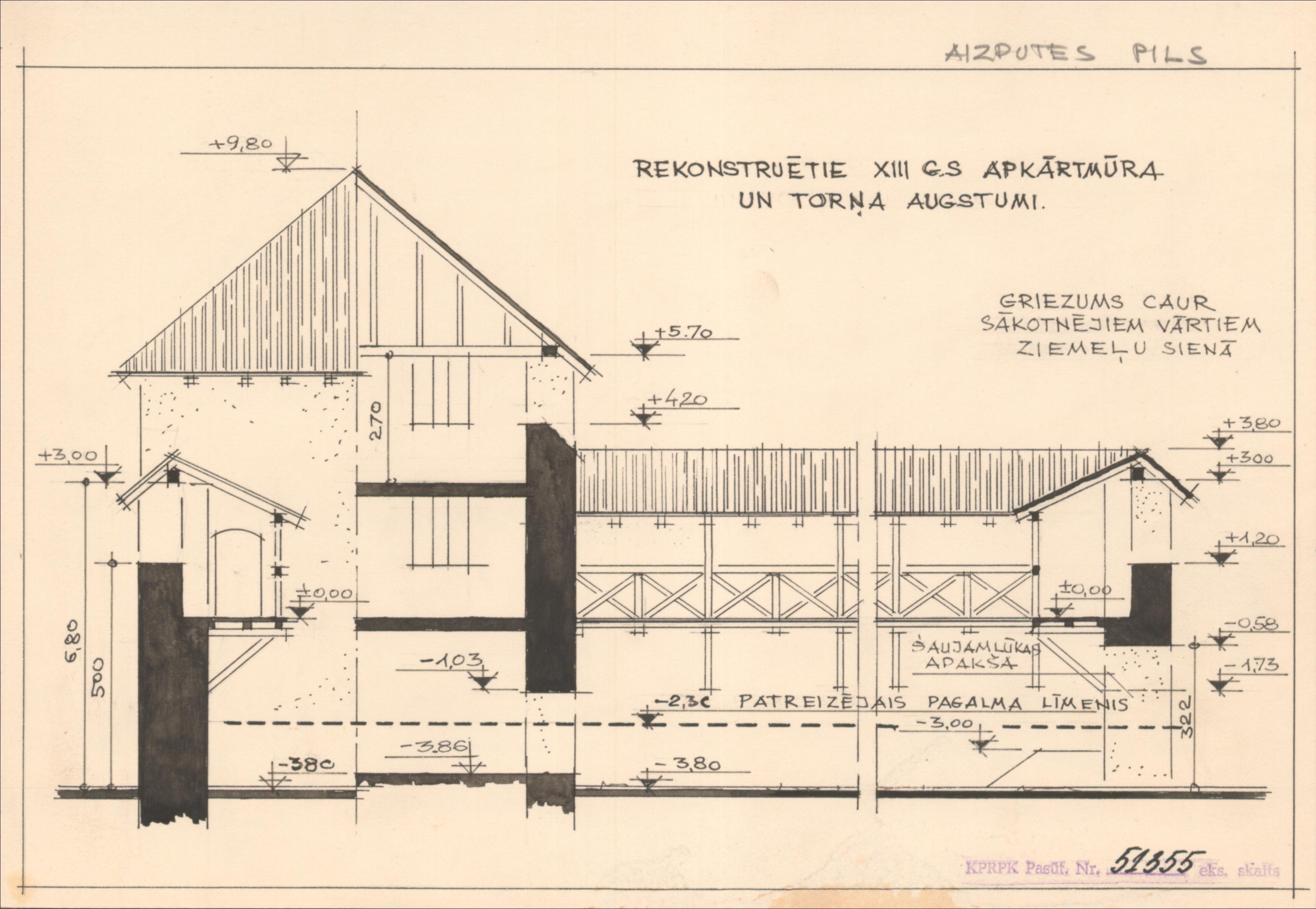 Aizputes pils. Rekonstruētie 13. gs. apkārtmūra un torņa augstumi (Aizputes novads, Aizpute. Liepājas iela 9.)