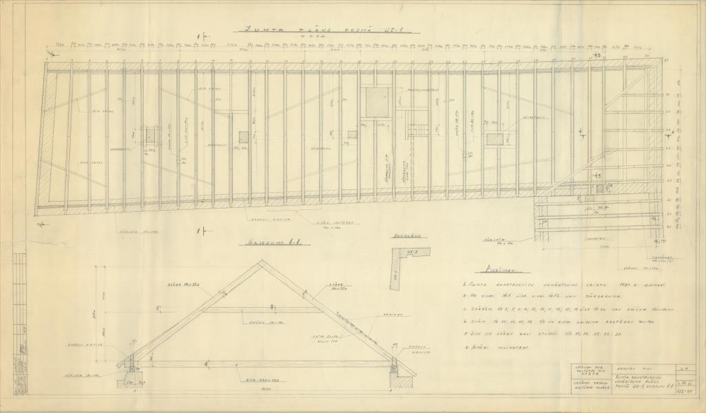 Aizputes pils. Jumta konstrukciju uzmērījuma plāns posmā UZ-1 (Aizputes novads, Aizpute. Liepājas iela 9.)