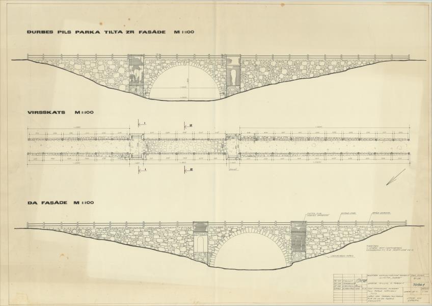 Durbes viduslaiku pils parks. Kājnieku tilts. Tilta ziemeļrietumu un dienvidaustrumu fasāde (Durbes novads, Durbe. Rīgas iela .)