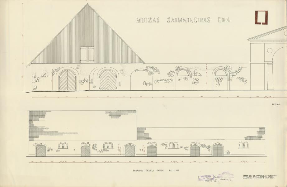 Ezeres muižas apbūve. Staļļi. Pagalma ziemeļu, rietumu, pagalma dienvidu fasādes (Saldus novads, Ezeres pagasts. Ezere. Centra iela 3.)