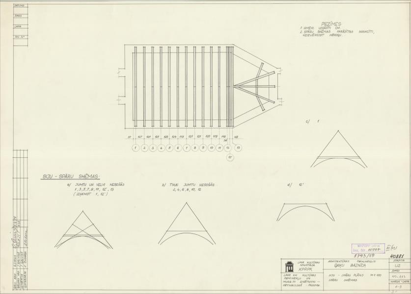 Gaiķu luterāņu baznīca. Siju-spāru plāns, spāru shēmas (Brocēnu novads, Gaiķu pagasts. Gaiķi.)