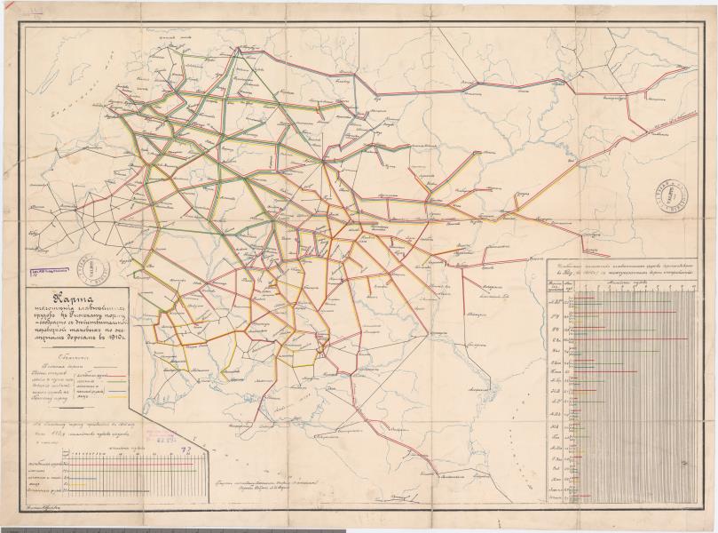Карта тяготения главнейших грузов к Рижскому порту - сообразно с действительной перевозкой таковых по железным дорогам в 1910 г.