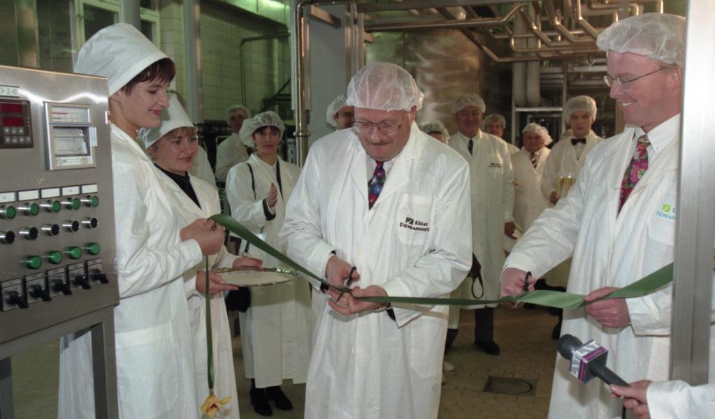 «Rīgas piensaimnieks». Arvīds Ušča, Aigars Kalvītis, «Tetrapak Latvija» direktors. Jaunās līnijas atklāšana. - Puriņš, Raitis, 1958- - 1997-10-20 (Fotogrāfija)