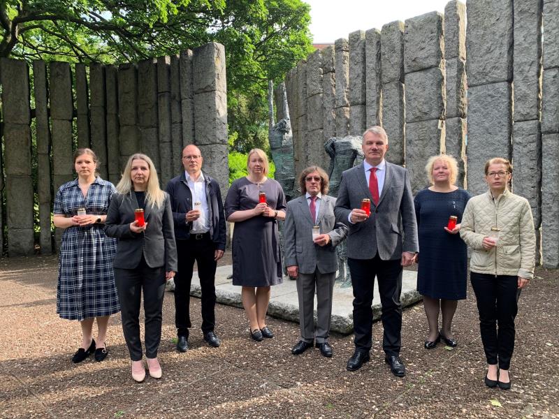 Latvijas vēstniecības Dānijā darbinieki un latviešu trimdas Dānijā pārstāvji, Dānijā pieminot 1941. gada 14. jūnija masu deportāciju 80. gadadienu