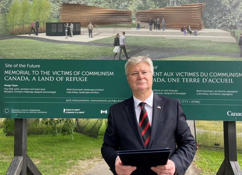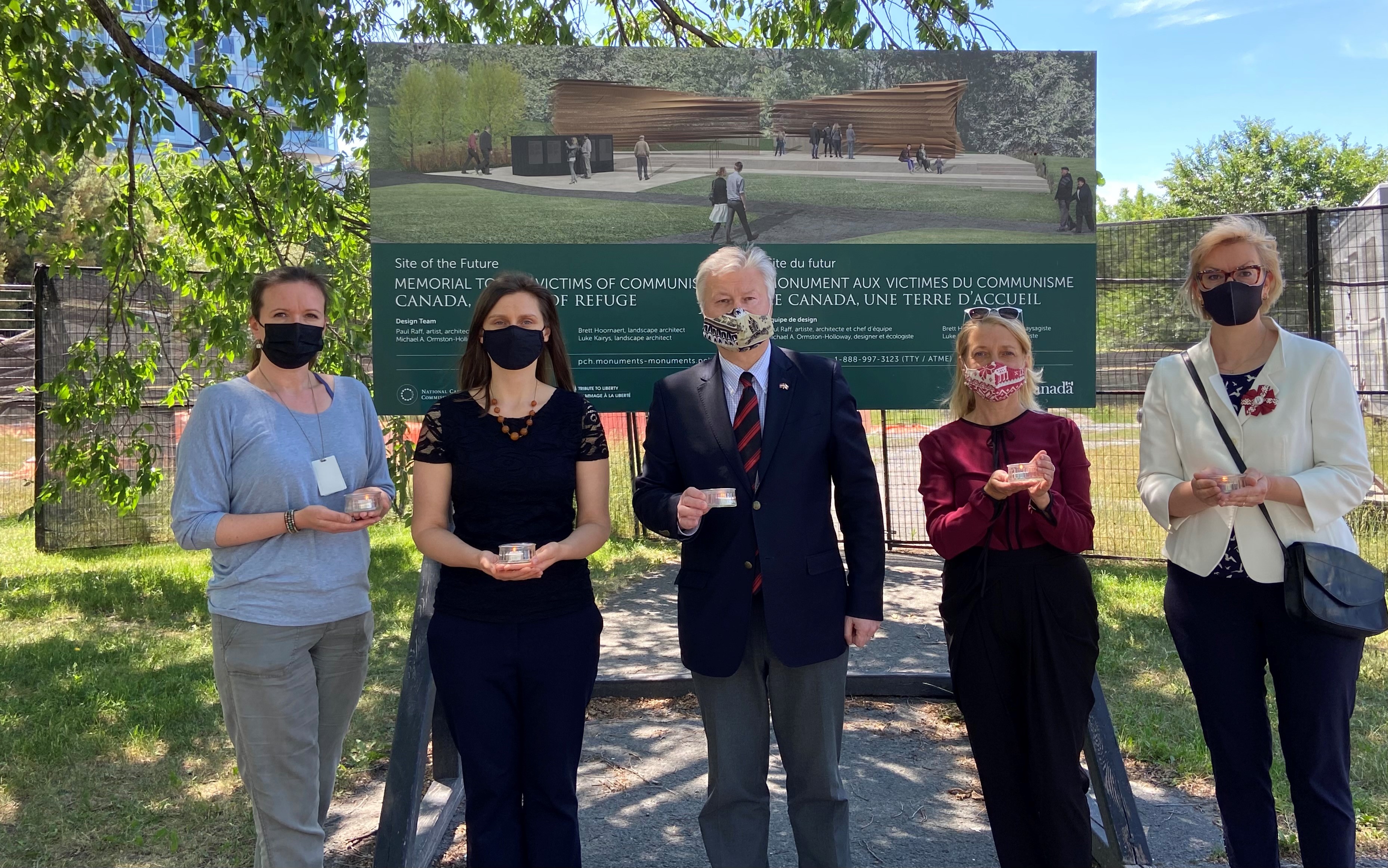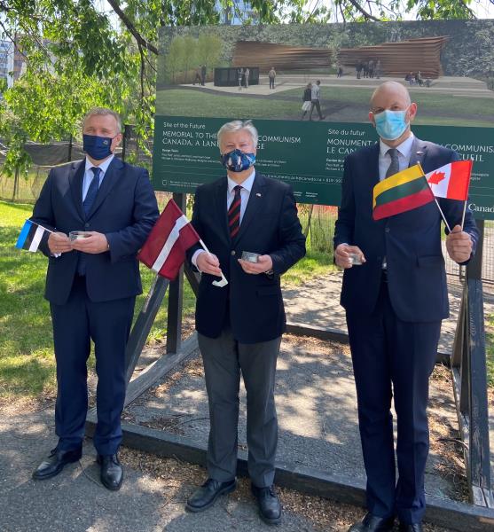 Baltijas valstu vēstnieki piemiņas brīdī pie topošā Komunisma upuru memoriāla "Veltījums brīvībai. Kanāda patvēruma zeme" (Tribute to Liberty. Canada, A Land of Refuge), Kanādā pieminot 1941. gada 14. jūnija masu deportāciju 80. gadadienu