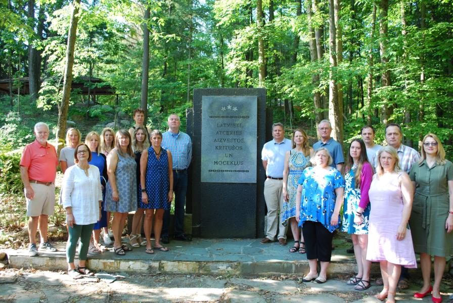 Aizvesto piemiņas akts pie Latviešu aizvesto pieminekļa. Milvoki, Amerikas Savienotās Valstis, 2021. gada 14. jūnijā