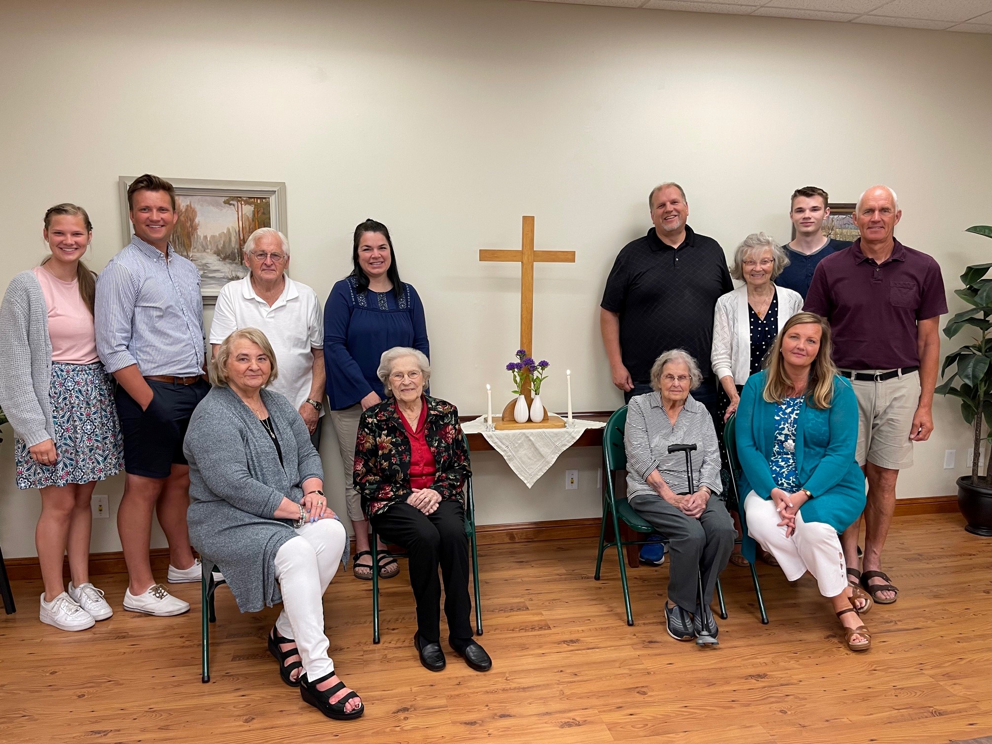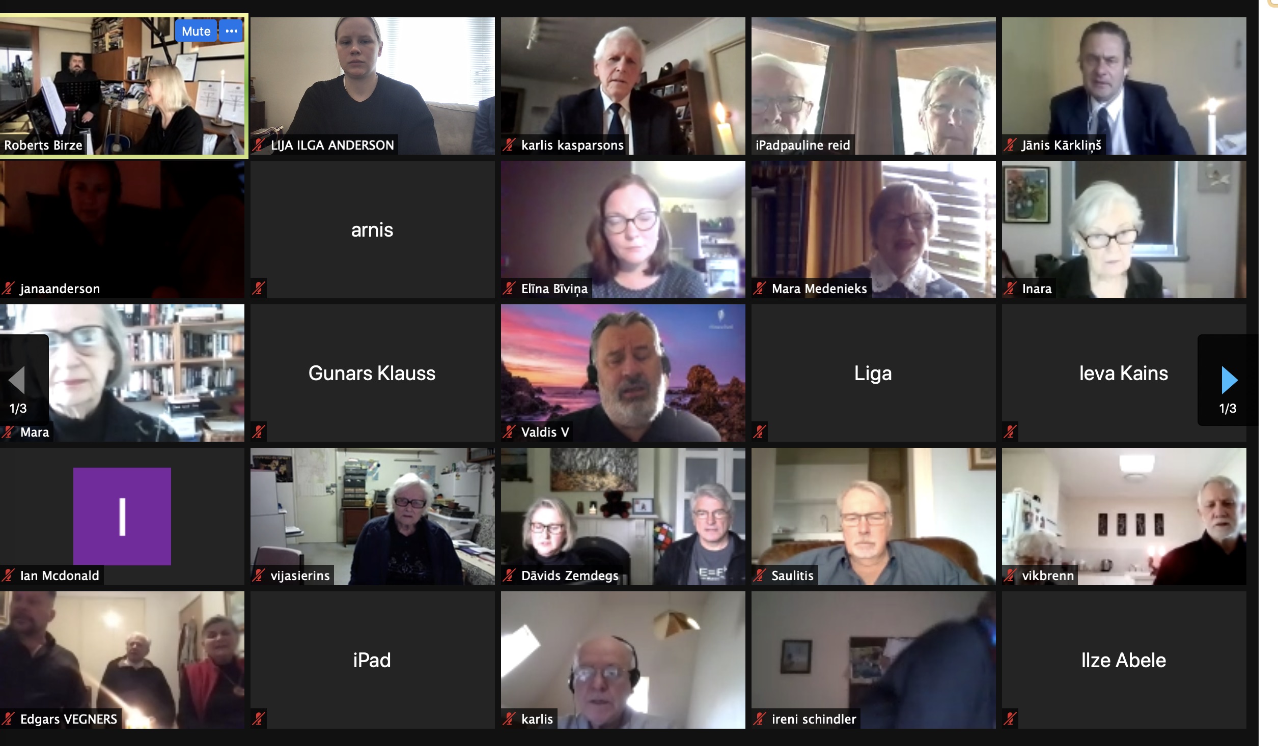 Pirmajā rindā no kreisās: Ināra Rozuklans, Lidija Palks, Benita Linde, Ingrīda Šteinblūma; otrajā rindā no kreisās: Lāra Šteinblūma, Mārtiņš Šteinblūms, Imants Kalniņš, Jolie Pelds, Voldemārs Pelds, Irma Pelds, Elijah Pelds, Arnis Šteinblūms. DeMoinē, Aijova, Amerikas Savienotās Valstis, 2021. gada 13. jūnijā