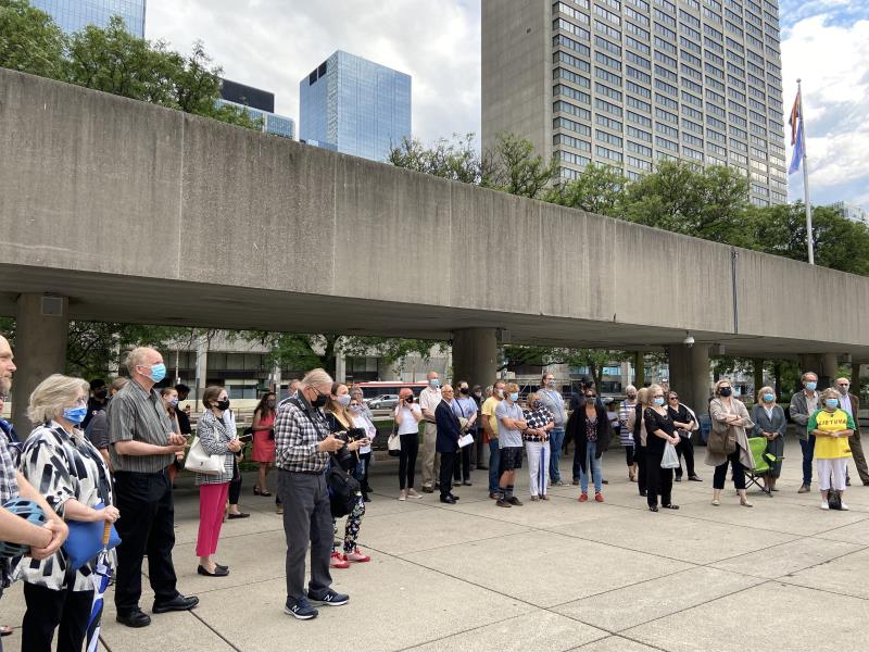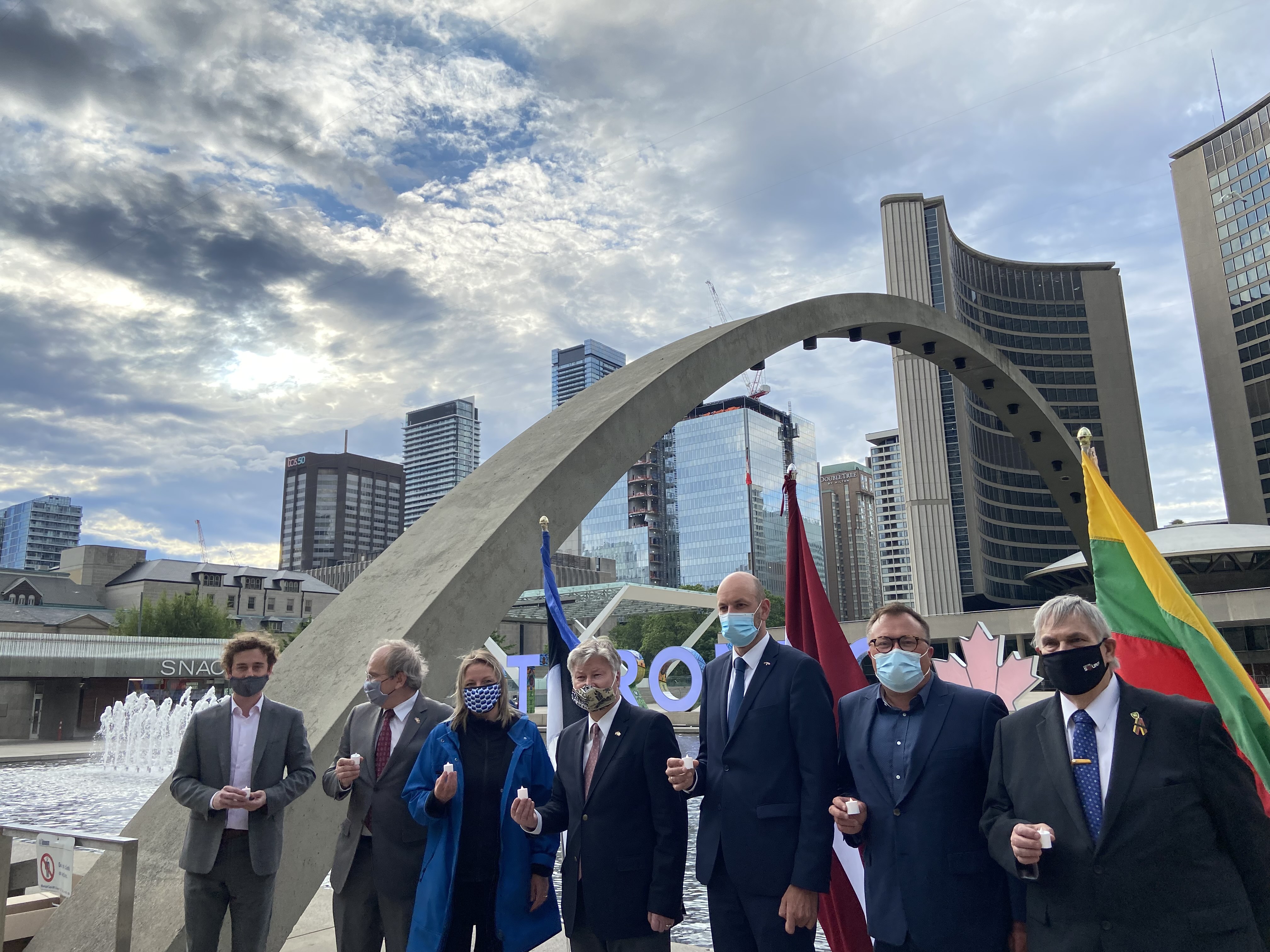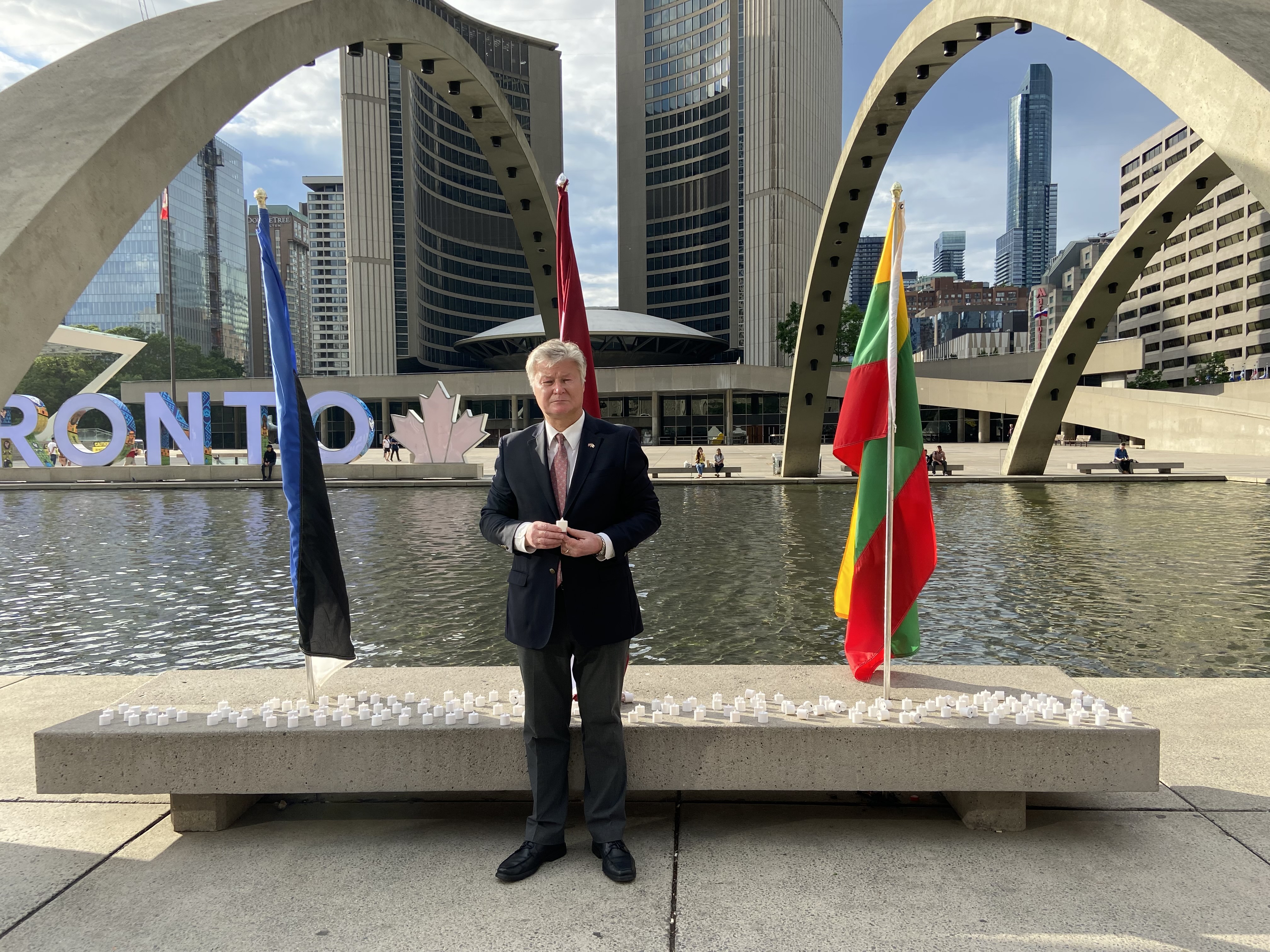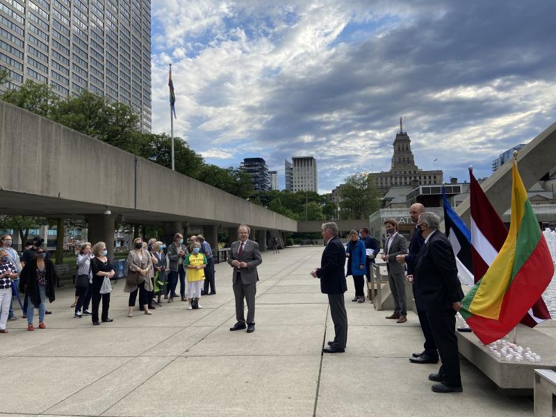 1941. gada 14. jūnija masu deportāciju 80. gadadienas piemiņas brīdis Toronto rātslaukumā, piedaloties Latvijas vēstniekam Kārlim Eihenbaumam, Lietuvas vēstniekam Dārijam Skusevičam, Kanādas parlamenta deputātam Ivanam Beikeram un Kanādas Baltiešu federācijas vadītājiem