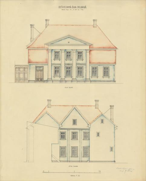 Dzīvojamā ēka. Fasāde, otrais stāvs ( Jelgava. Pasta iela 35.)
