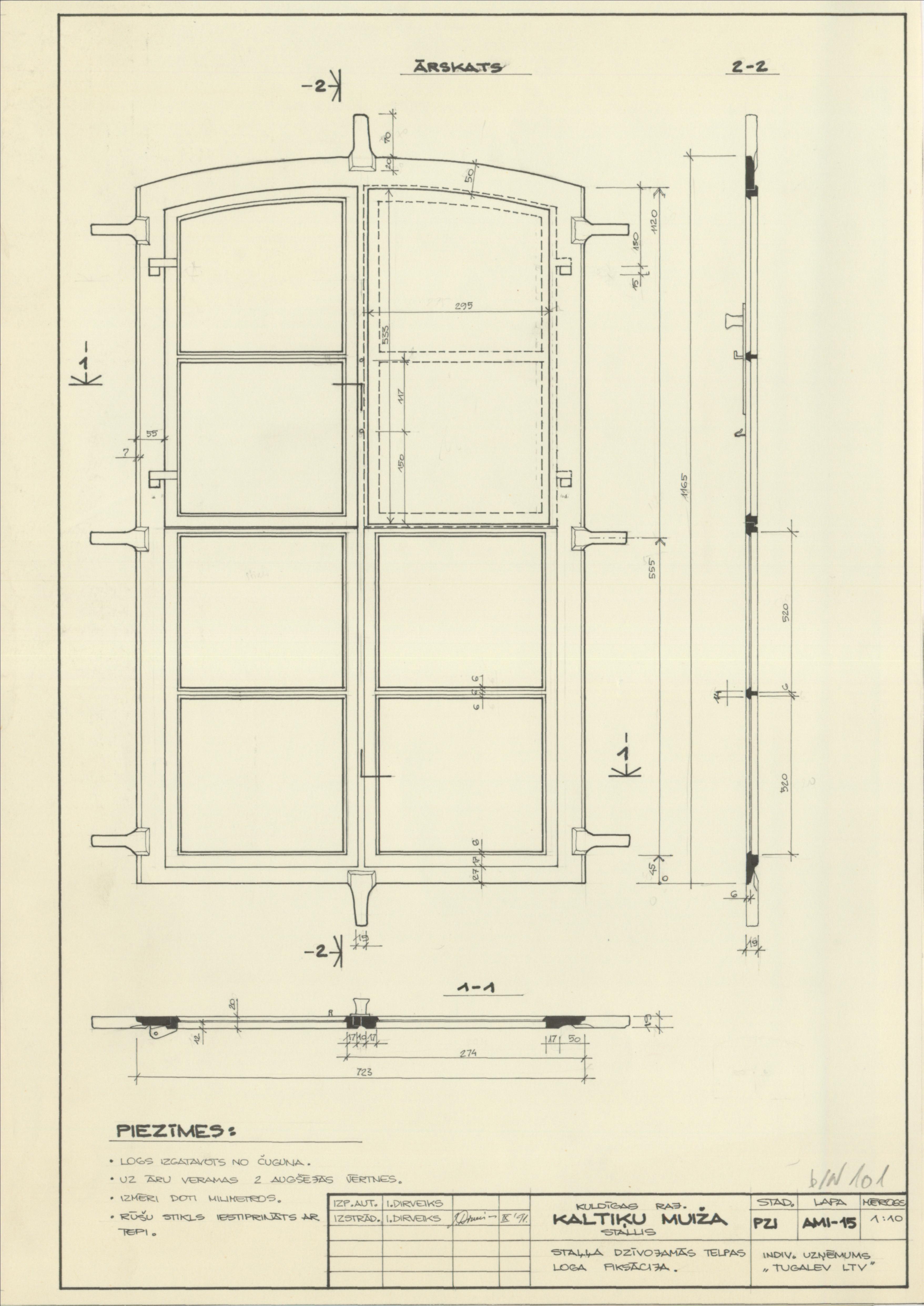 Kaltiķu muiža. Staļļa dzīvojamās telpas loga fiksācija (Kuldīgas novads, Pelču pagasts. Kaltiķu muiža.)