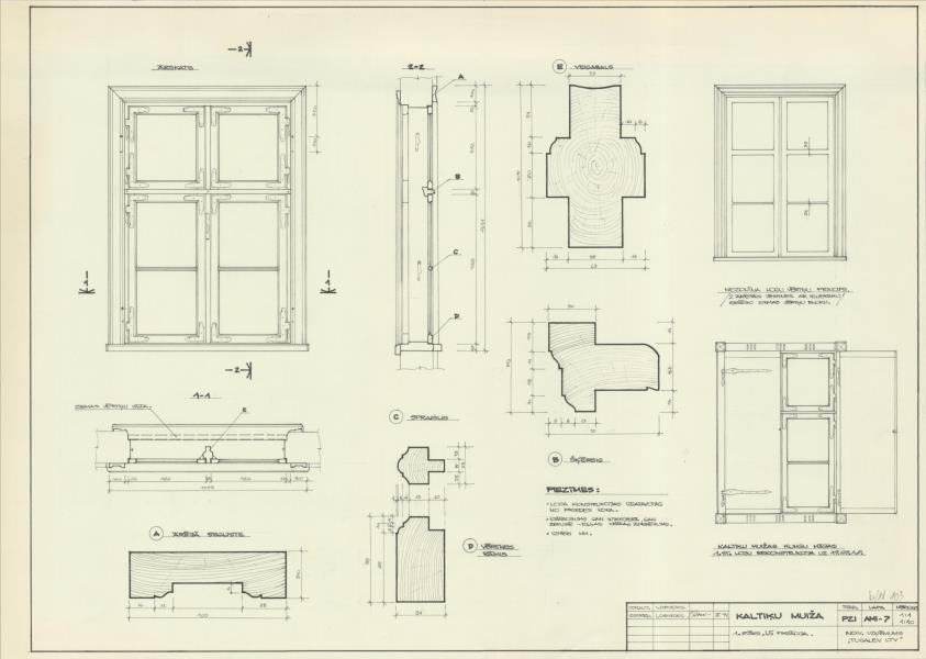 Kaltiķu muiža. Kungu māja. 1. stāvs, L-5 fiksācija, 19. gs. pirmās puses loga rekonstrukcija (Kuldīgas novads, Pelču pagasts. Kaltiķu muiža.)