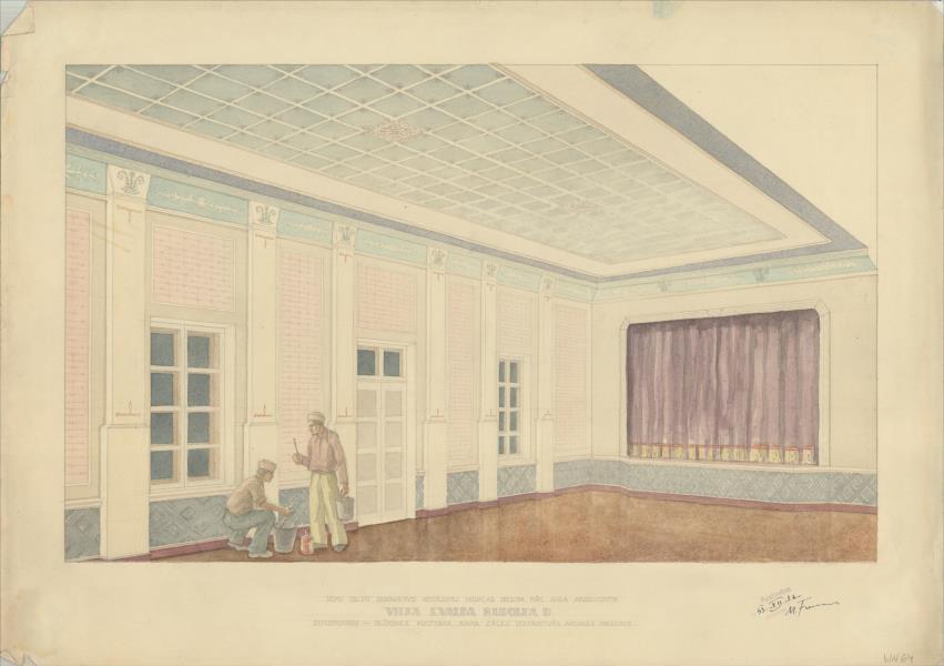 Brūzis, vēlāk saviesīgās biedrības nams. Kultūras nama zāles dekoratīvās apdares projekts (Alūksnes novads, Alūksne. Brūža iela 7.)