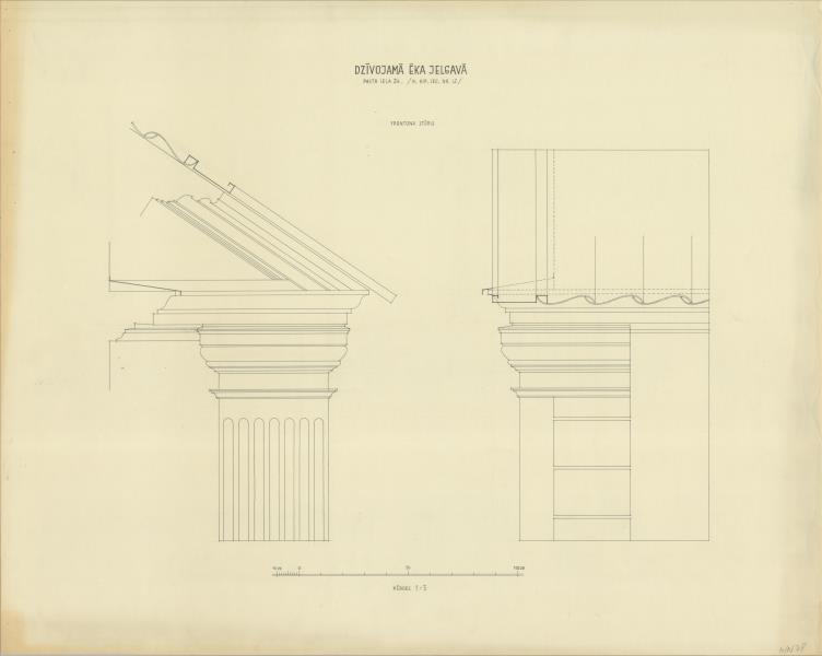 Dzīvojamā ēka. Frontona stūris ( Jelgava. Pasta iela 24.)