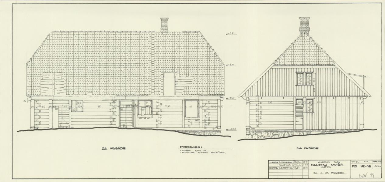 Kaltiķu muiža. Klēts. Ziemeļu-austrumu un dienvidu-austrumu fasādes (Kuldīgas novads, Pelču pagasts. Kaltiķu muiža.)