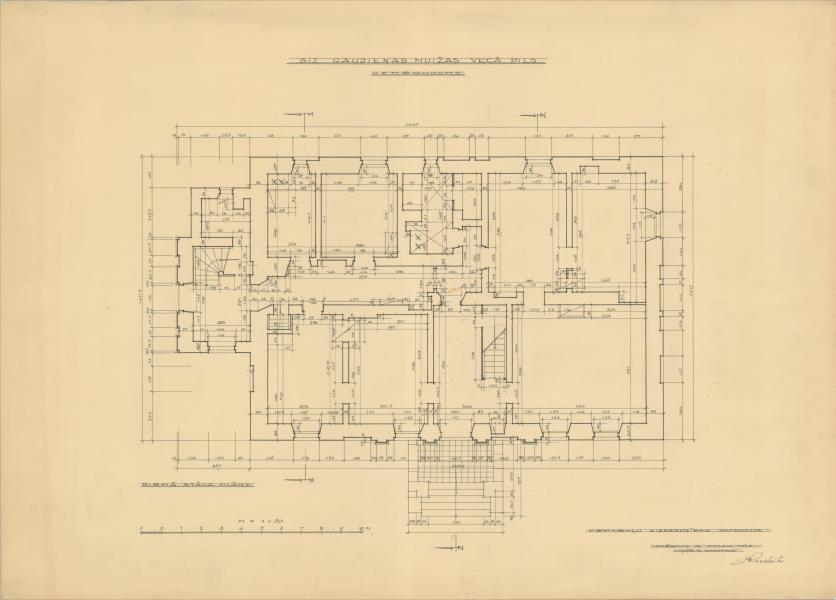 Gaujienas muižas apbūve. Muižkunga māja, pirmais stāvs (Apes novads, Gaujienas pagasts. Gaujiena. Muižkungi.)